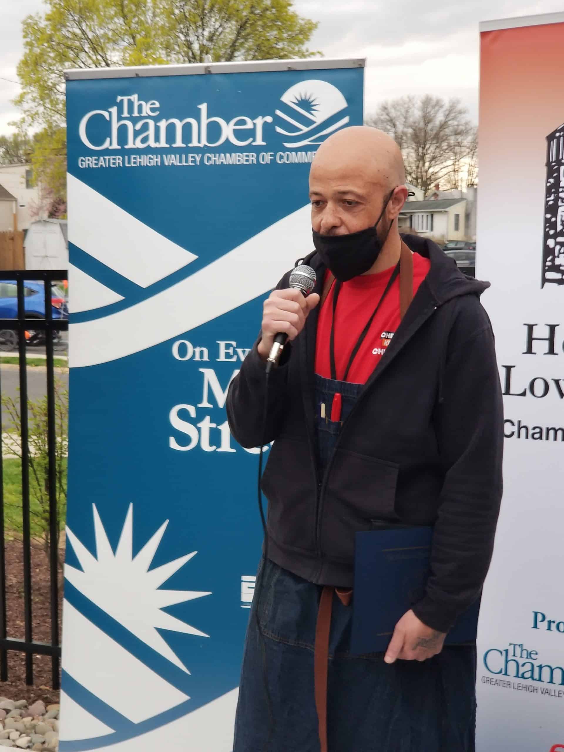 Stout is the owner of ChefMeals, a catering and meal prep/delivery service that is based out of the fire company’s kitchen, and was joined by his family for the special occasion.