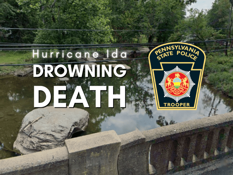 In a news release, troopers said 65-year-old Donald Allen Bauer of Perkiomenville, Montgomery County, drowned after his vehicle became submerged in flood waters.