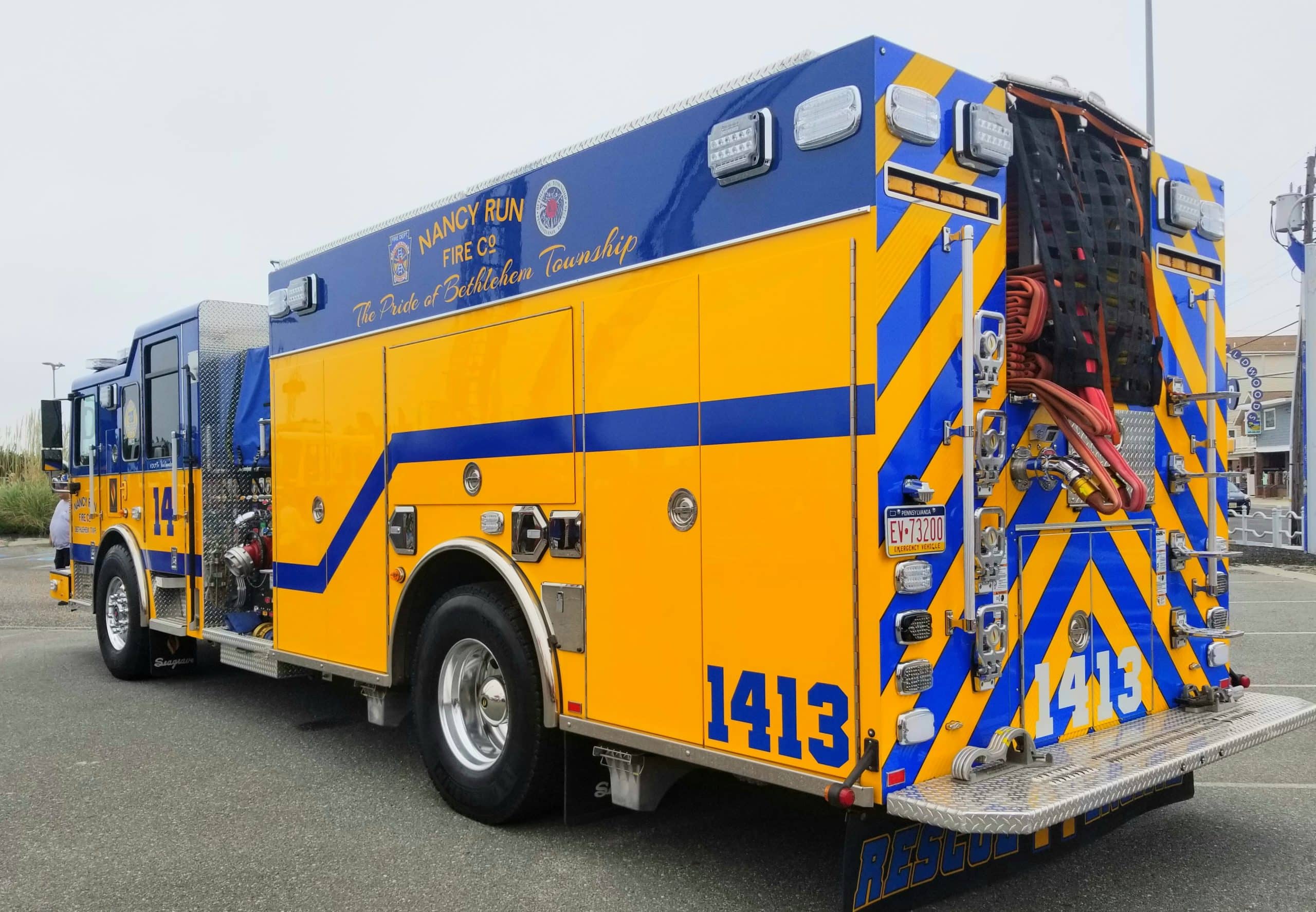 Among those who displayed vehicles and equipment outside the seaside city’s convention center–and right next to its famous boardwalk–were Nancy Run Fire Company of Bethlehem Township; McAdoo Fire Company Inc. of McAdoo, Schuylkill County; Blue Ridge Hook and Ladder Company of Saylorsburg, Monroe County; Shawnee Fire Company of East Stroudsburg, Monroe County; Liberty Fire Company of Schuylkill Haven, Schuylkill County; Pocono Township Volunteer Fire Company of Pocono Township, Monroe County; and Quakertown Fire Company No. 1 of Quakertown, Bucks County. At least one other area fire company–from Lake Harmony, Carbon County–participated in Saturday’s parade through the streets of Wildwood.