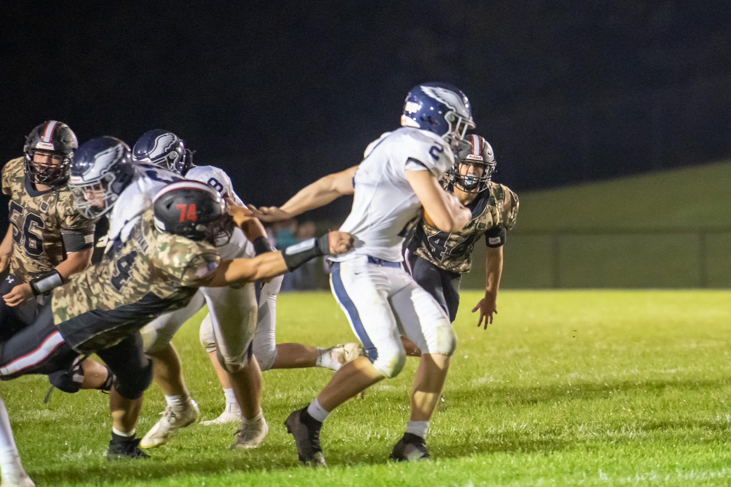 Just as momentum seemed to be tilting heavily toward the Panthers, Blue Mountain chunked their way through a 65-yard scoring drive. The nine-play sequence followed a failed fourth-down conversion attempt by the Panthers at the Blue Mountain 35-yardline. The Eagles finished the drive with a 15-yard touchdown pass off bootleg action. Blue Mountain converted the PAT to close out the first half scoring and climb back to a 21-14 deficit.