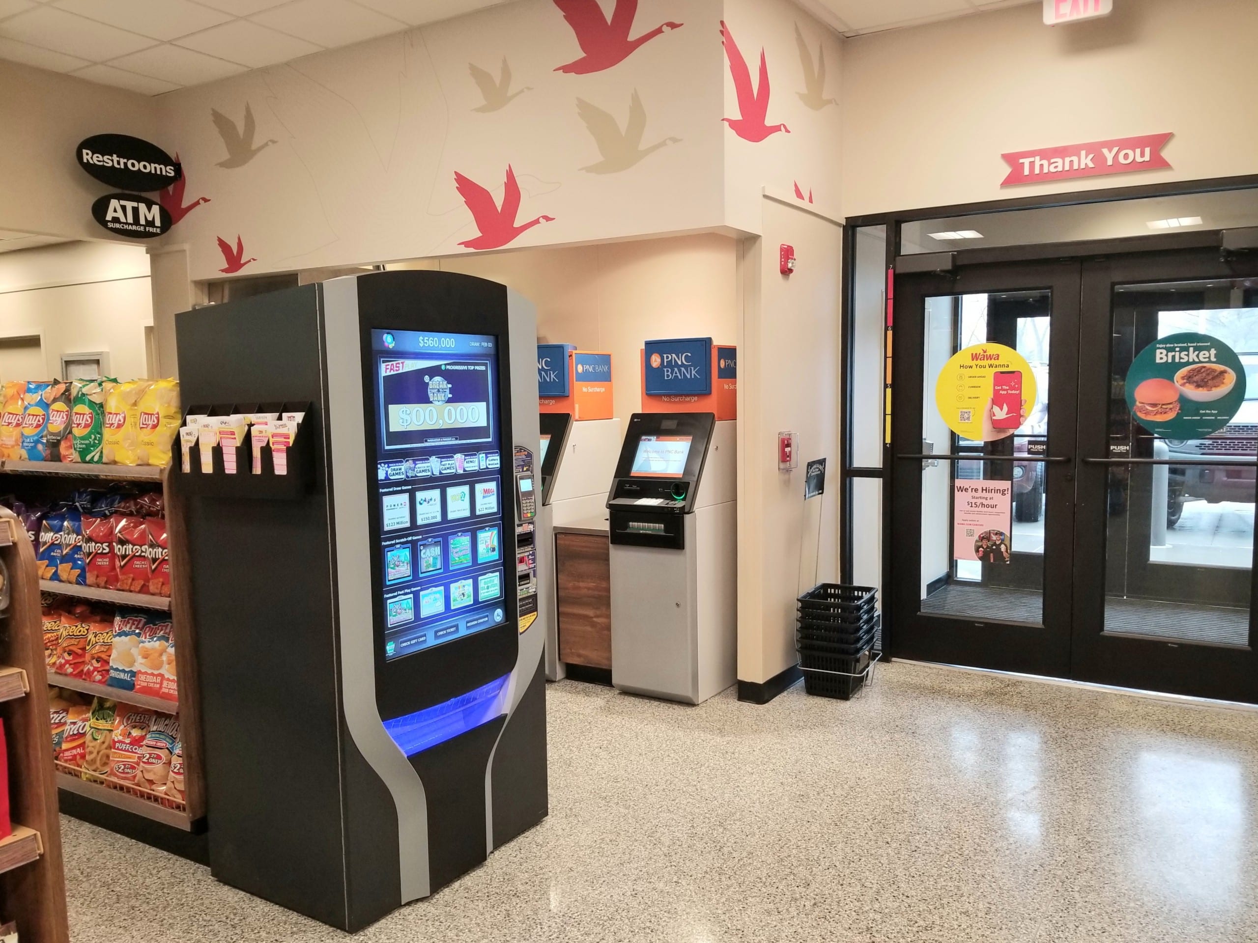 A Pennsylvania Lottery kiosk and ATMs are located near the rear entrance to the store.