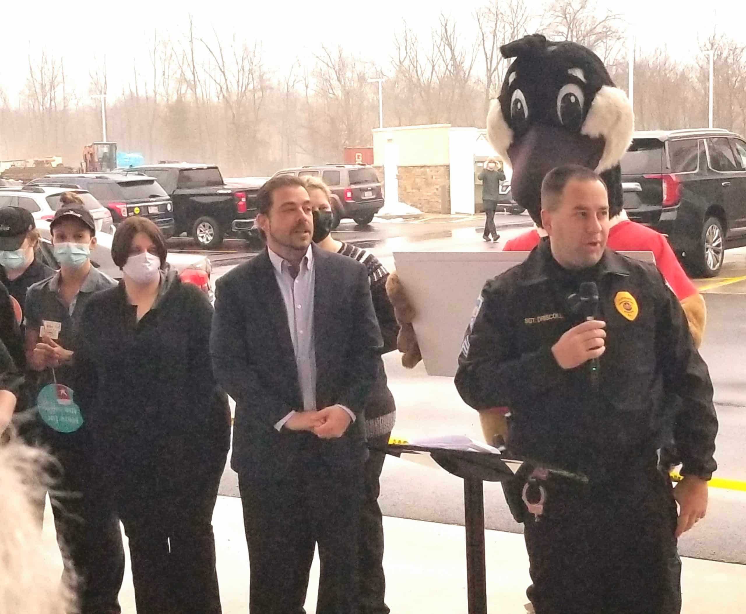 Sgt. Justin Driscoll of the Upper Saucon Township Police Department thanks Wawa for their donation to the department.