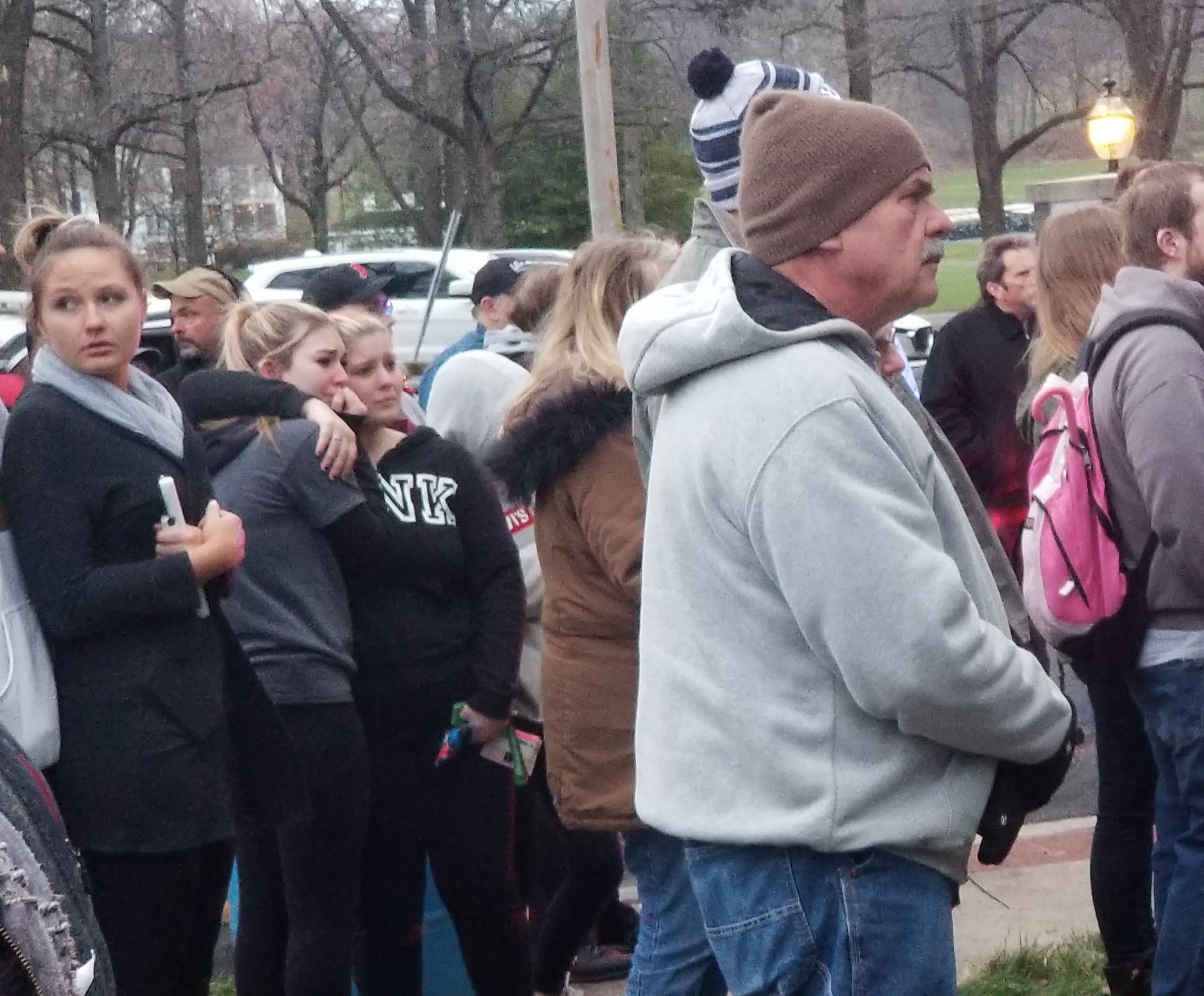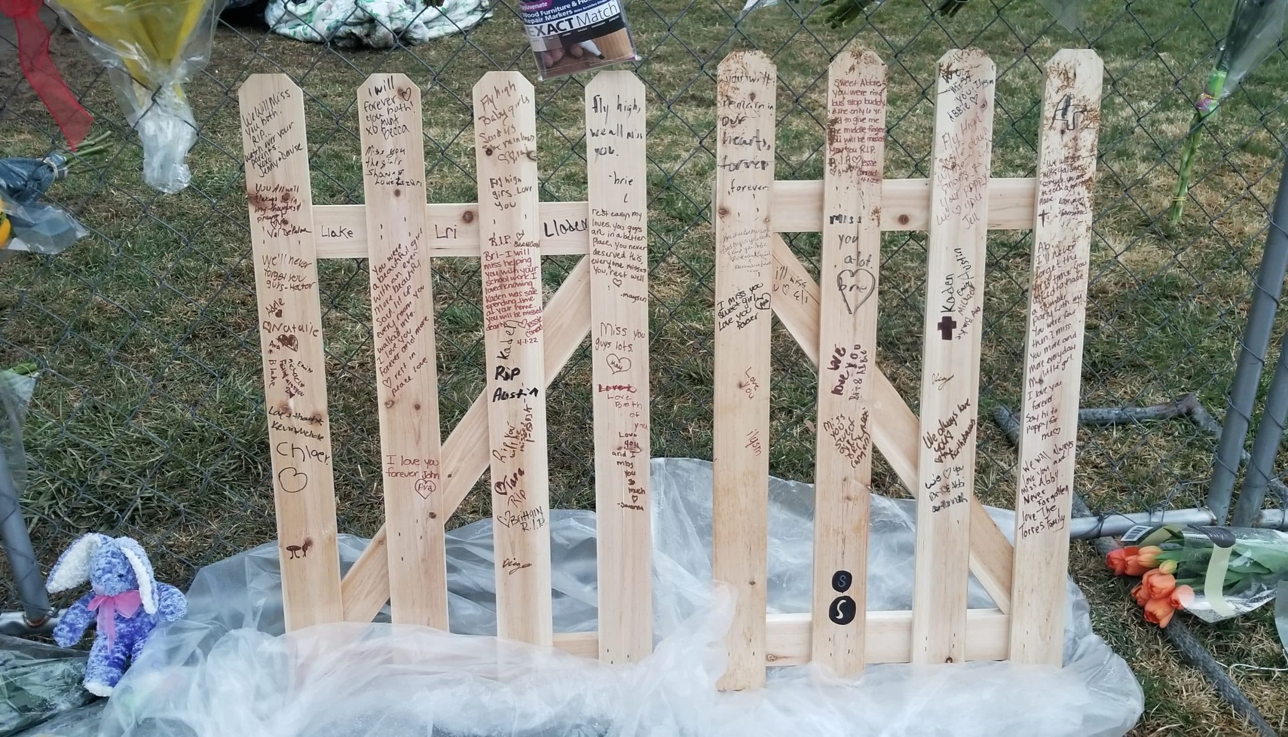 Before and after the vigil, small groups of teens could be seen quietly shedding tears, while others added items to or viewed the fence memorial along Linden Avenue.