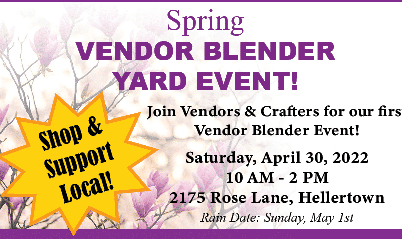 Mother’s Day is coming up, and a great place to purchase gifts for mom (as well as others–or yourself!) will be at a Spring Vendor Blender yard event in Hellertown later this month.