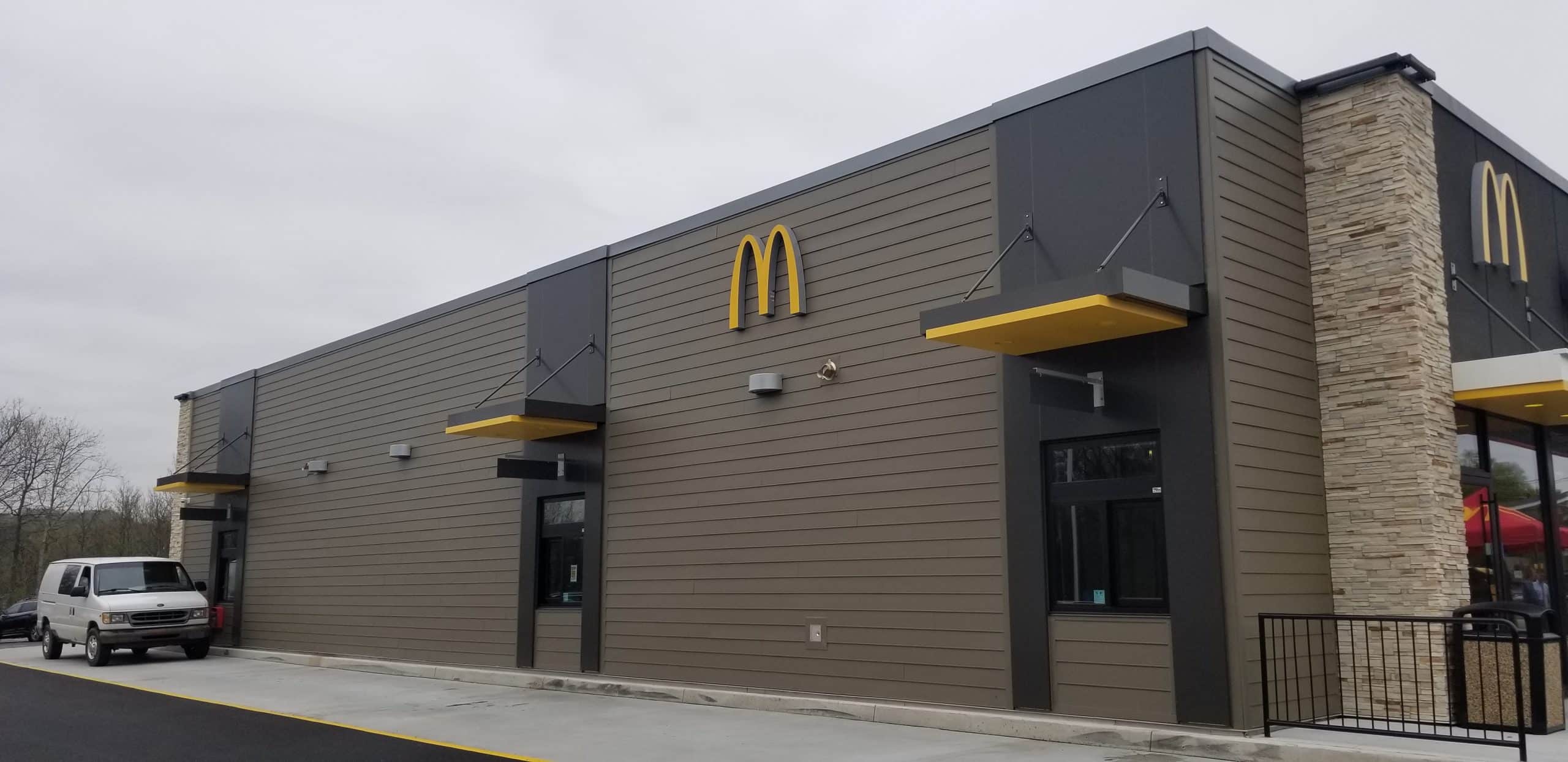 Inside the ultramodern McDonald’s guests can order food from one of several kiosks, and the restaurant features a large drive-thru lane for the convenience of patrons on the go.