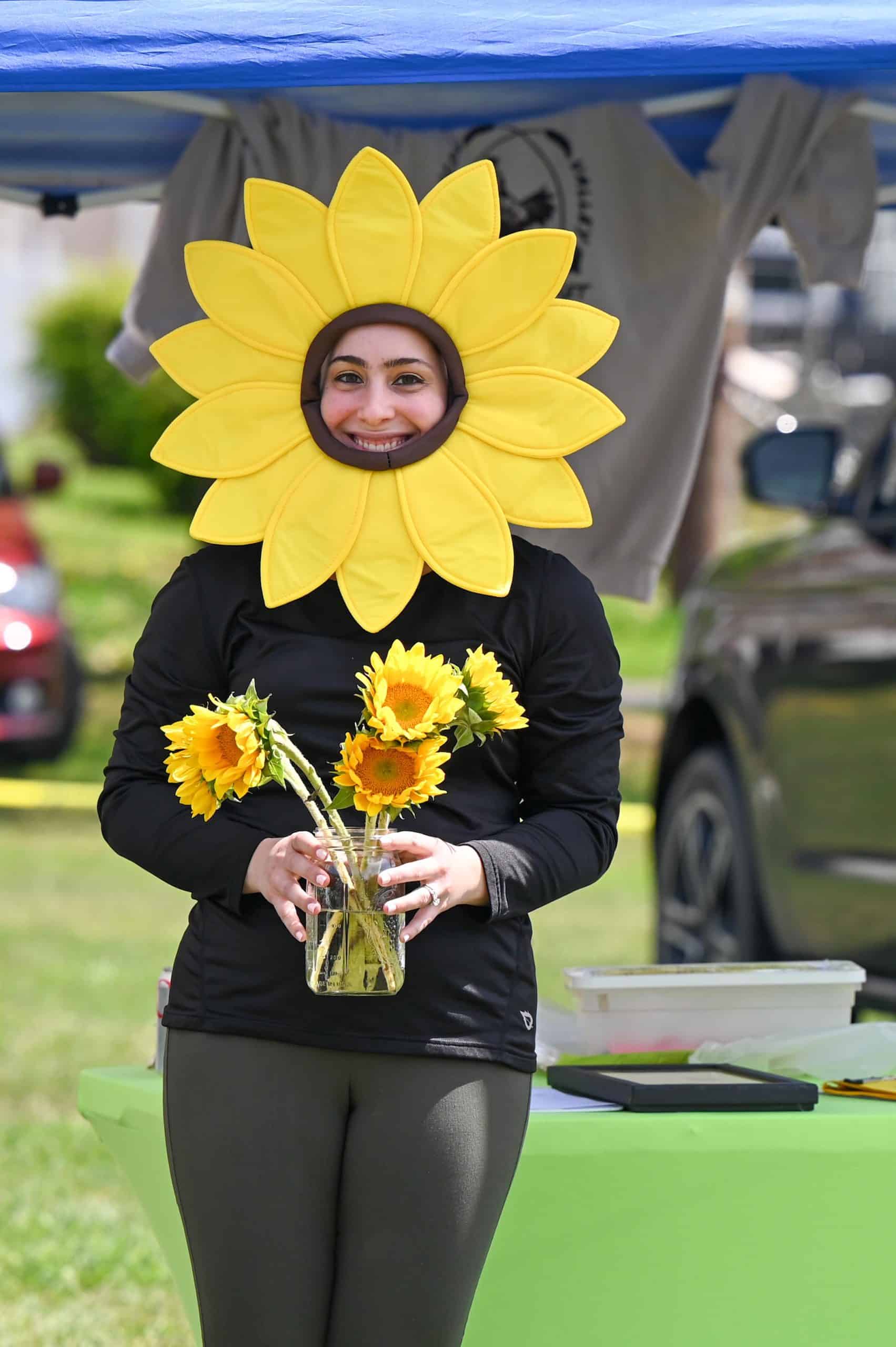 Above, promoting the market’s annual Sunflower Contest is Emily, a newly-recruited volunteer. The contest is sponsored by Lost River Caverns and rewards the person who grows the biggest sunflower seed head with a prize in September. It is free to enter, and seed packets along with instructions for growing your sunflowers will be available from volunteers this Sunday.