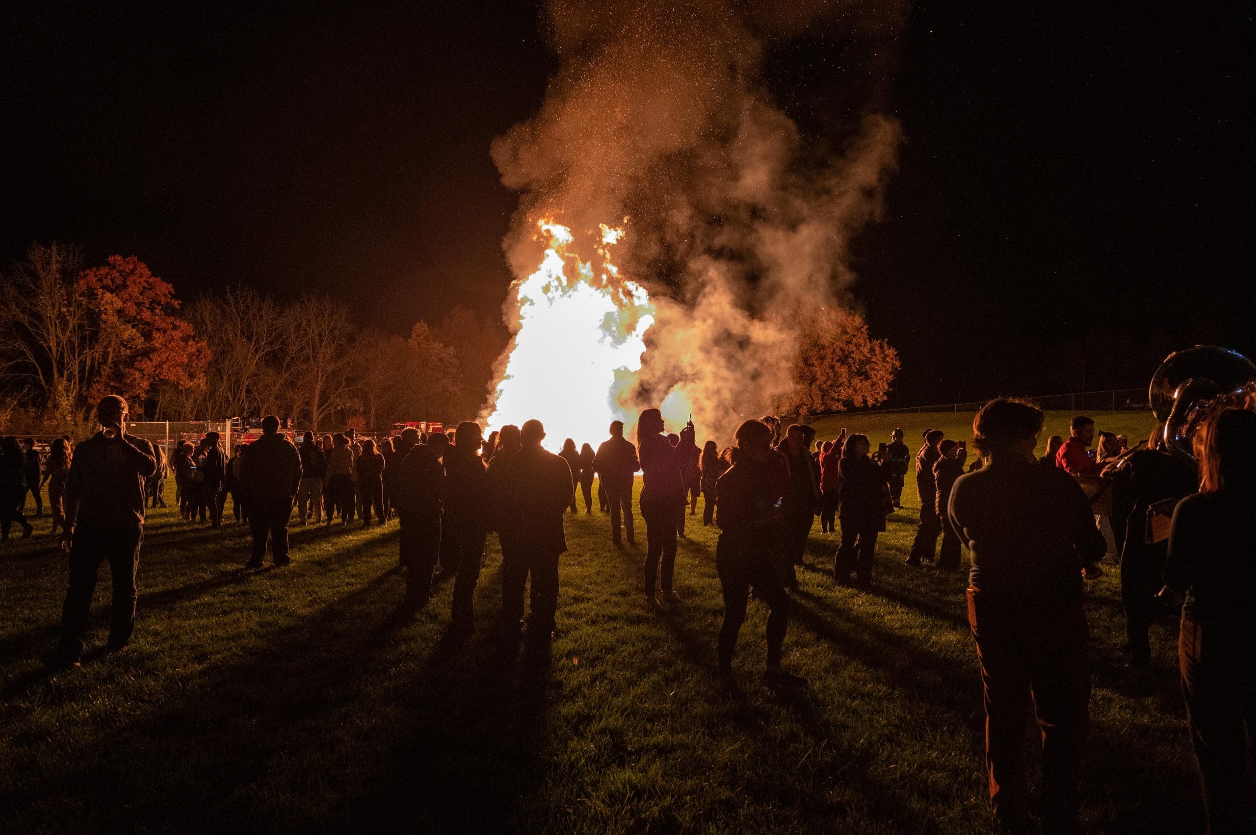 Hundreds of students, staff and community members participated in the annual fall tradition of building, lighting and watching the bonfire as an expression of school spirit.