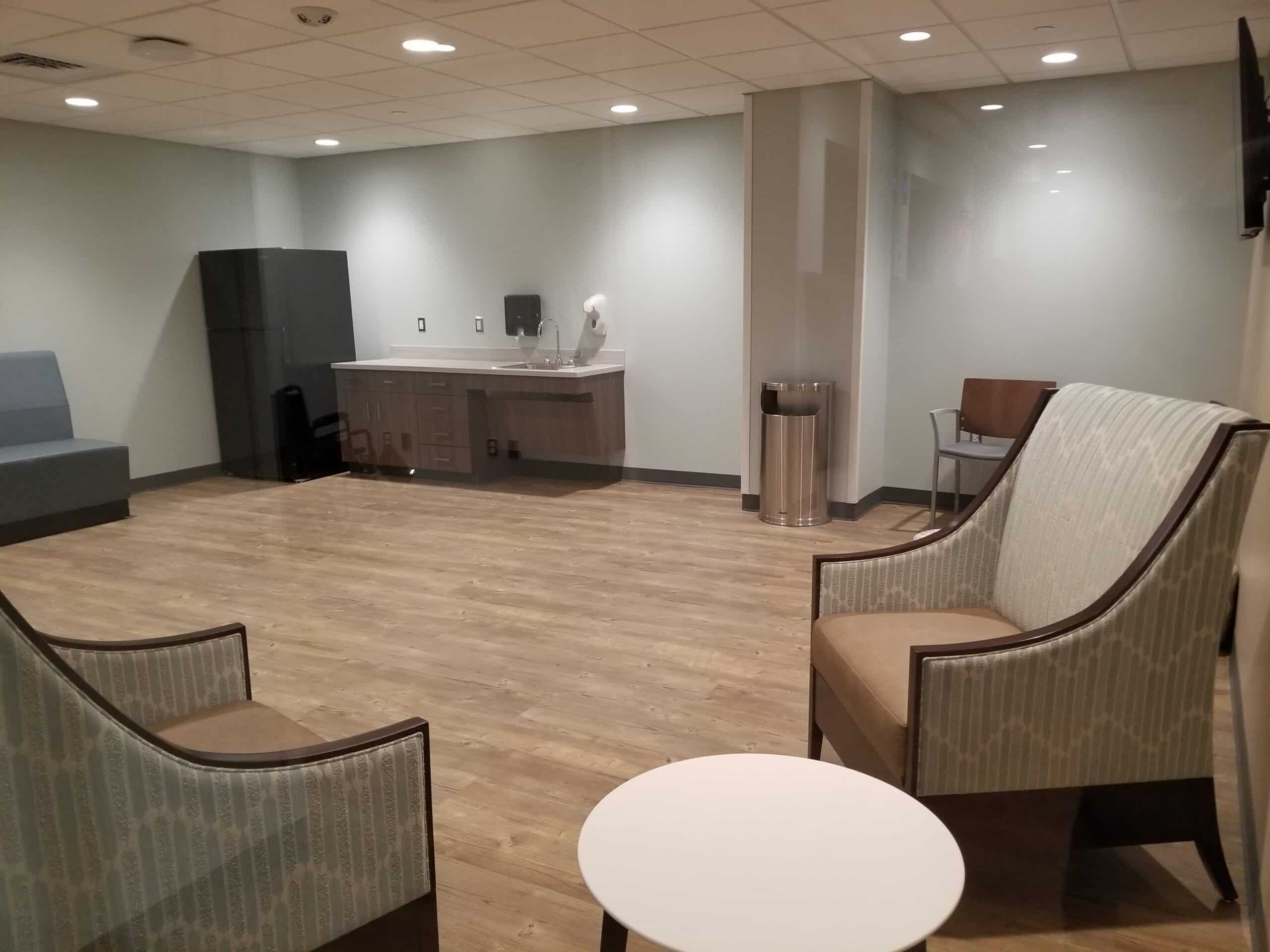 On the second floor, an expanded infusion suite with 16 chairs for cancer patients “has lots of natural light, making patients’ infusion experience much more comfortable,” noted Mary-Kate Cellmer, Administrator of St. Luke’s Cancer Center.