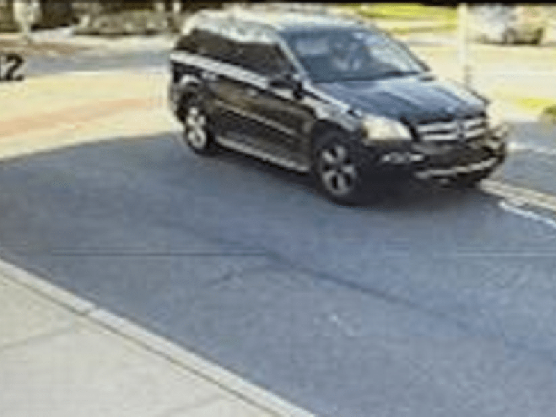 Pictured above: Security footage of a Mercedes SUV that struck a vehicle on Main Street Tuesday at 6:44 p.m. The driver left the scene without stopping and was last seen headed south on Main Street. (Contributed photo)