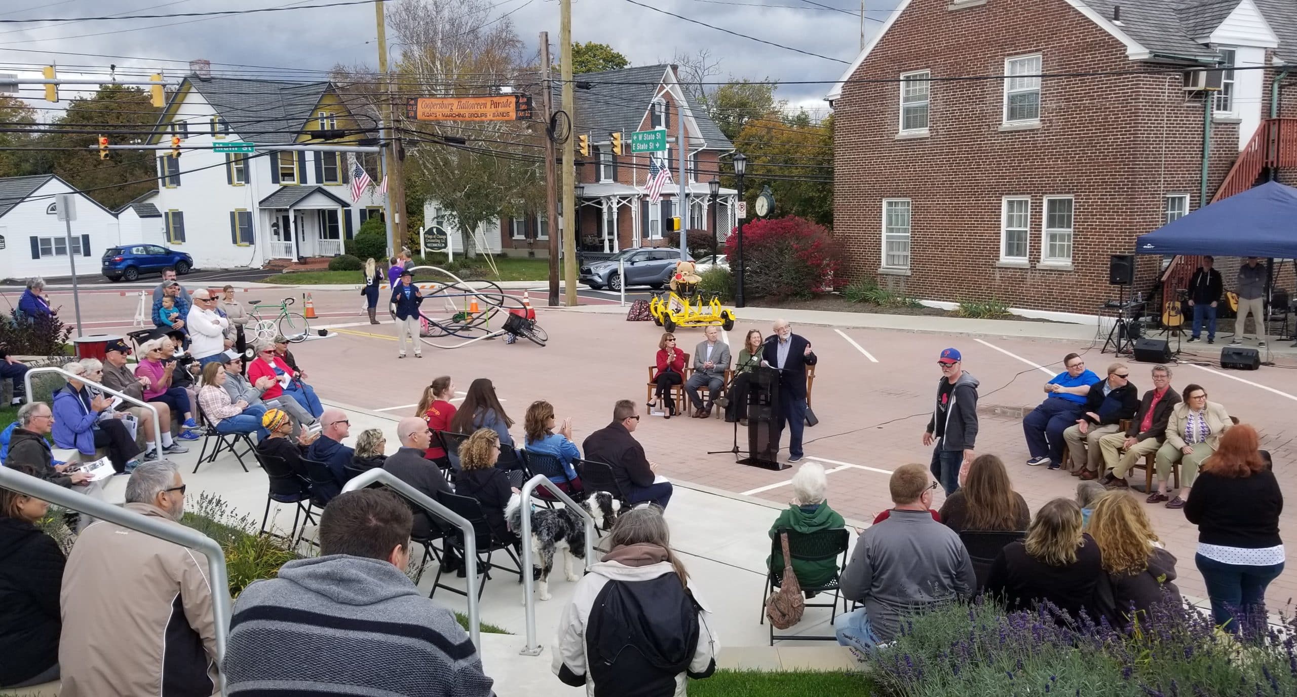 Saturday was a special day in Coopersburg, where elected officials, civic leaders and supporters gathered to celebrate the completion or near-completion of major infrastructure projects that have both beautified the community and made it more accessible to pedestrians. In addition to the dedication of a new Town Center Park and Public Square at E. State and S. Main streets, event highlights included a ceremonial ribbon-cutting for nine completed phases of streetscape improvements and the unveiling of a statue that bridges Coopersburg’s past and present with its future.