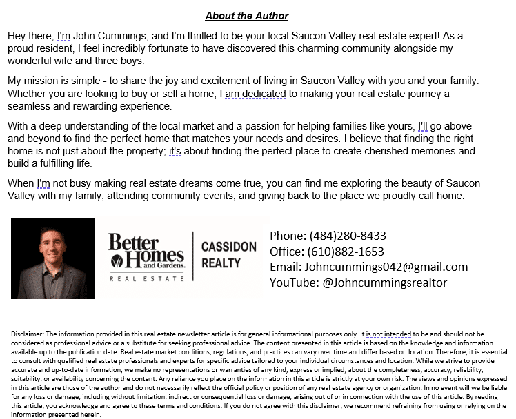 This year we have seen major changes in the real estate market. Increased mortgage rates, prices that remain high and increased costs overall have reduced purchasing power for the average individual and even created a lull in home sales. What you may not have considered is how this is affecting your local businesses and why it is important. Although prices in Saucon appear to remain stable, if we don’t support our local businesses we could be on the fast track to a declining local economy, which ultimately affects everyone in the area. There’s no better time to focus on where we spend our money than now, as we enter the holiday season!