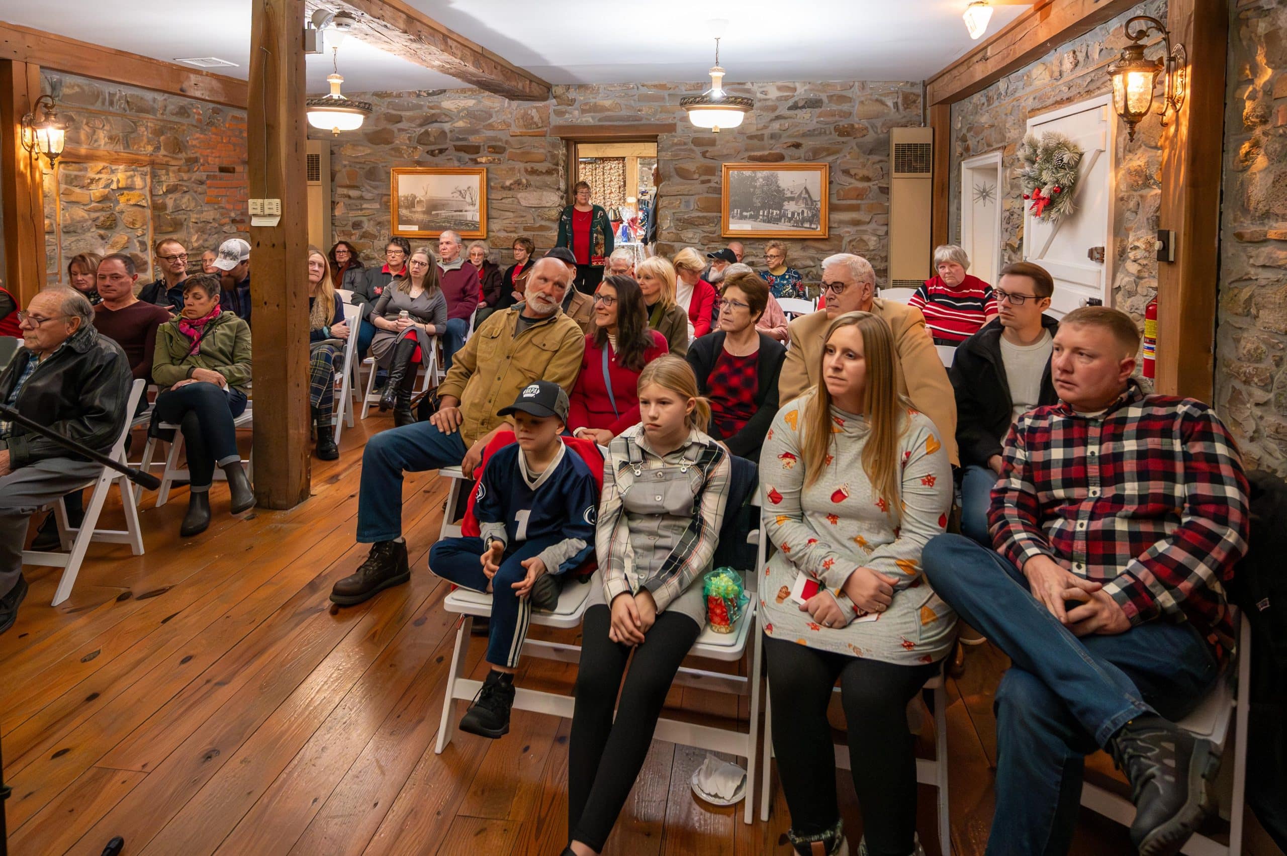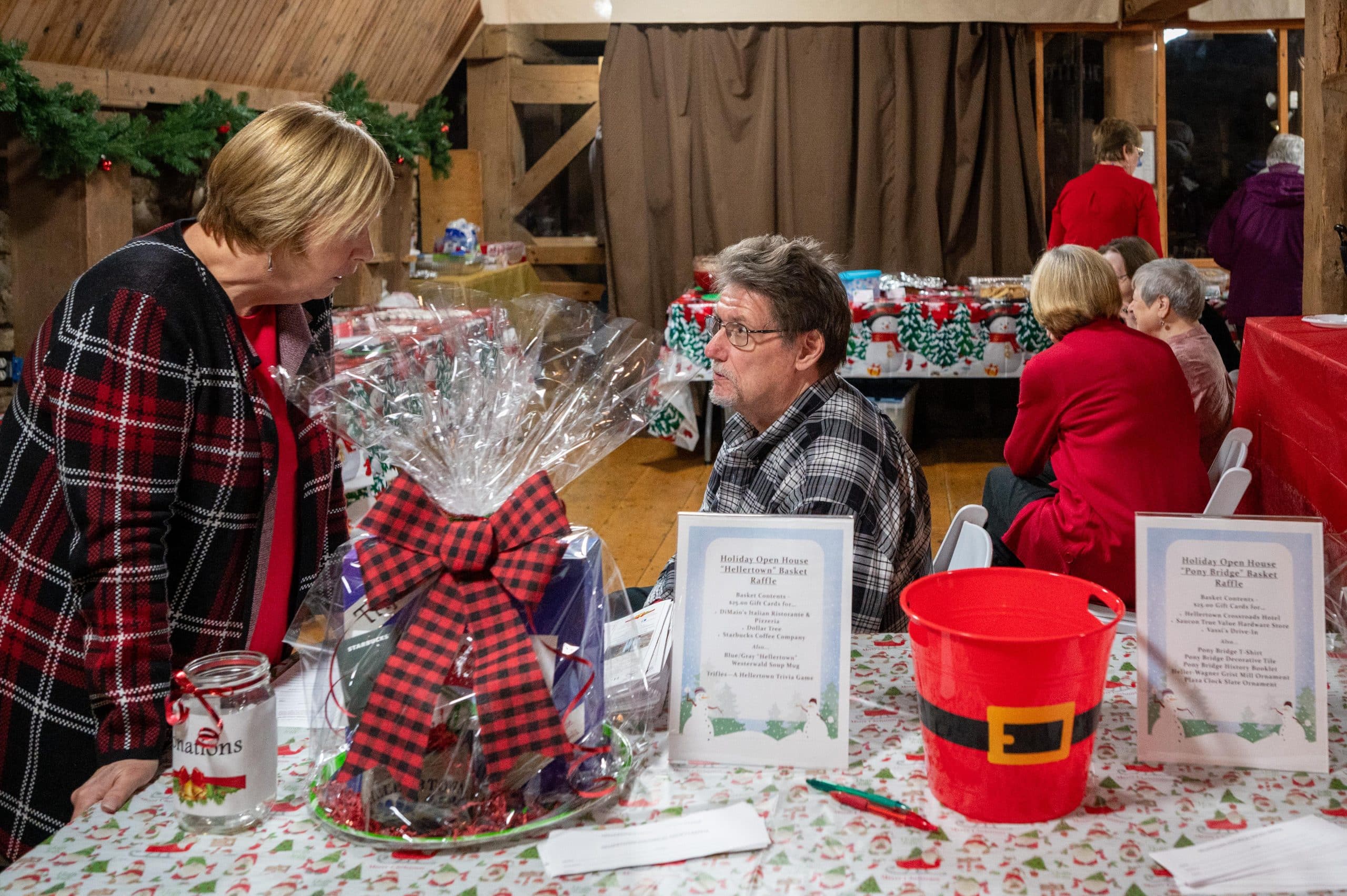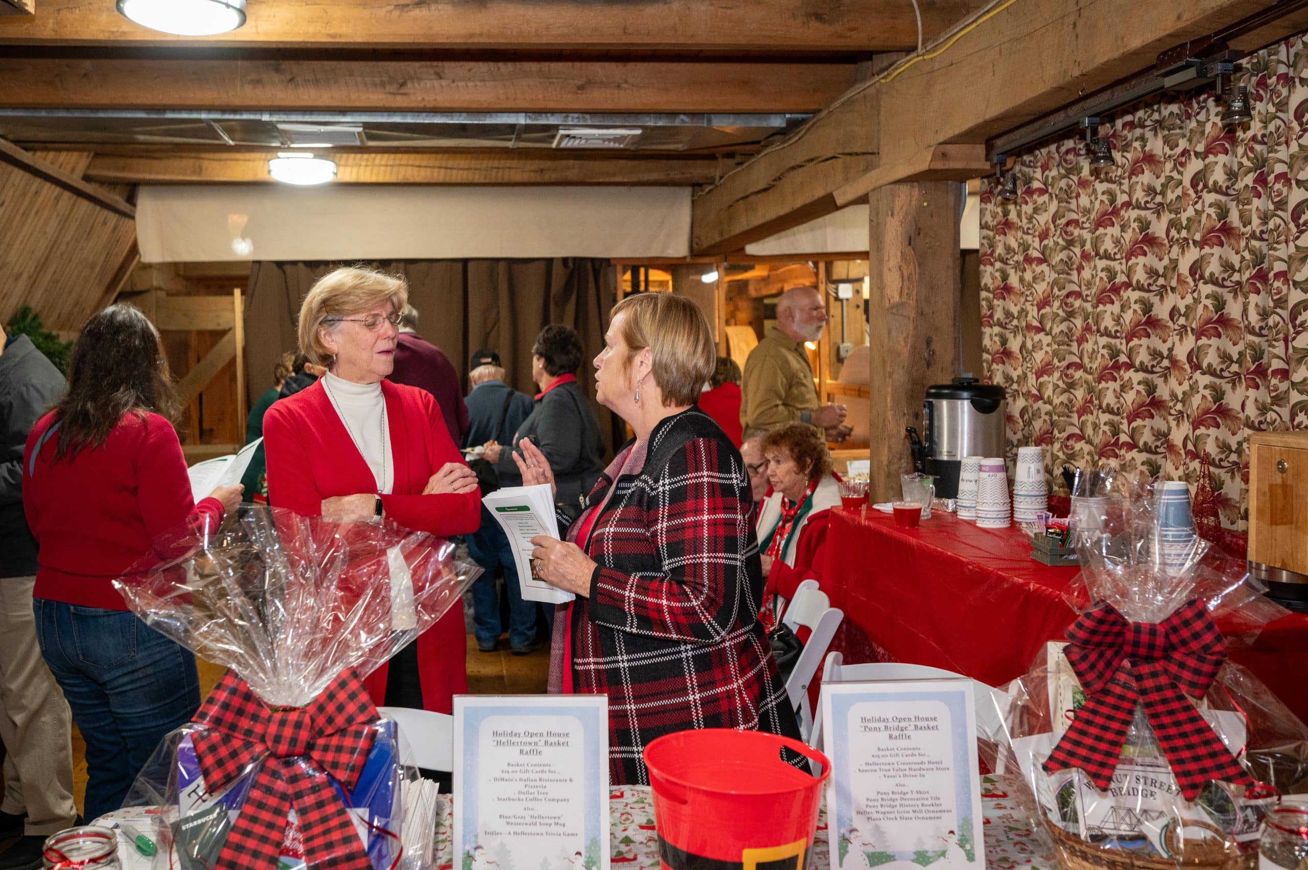 A festive atmosphere filled the historic Heller-Wagner Grist Mill Tavern Room during Friday’s Holiday Open House hosted by the Hellertown Historical Society.