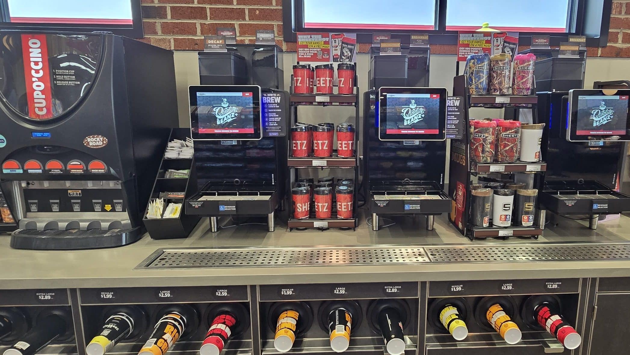 The convenience store is shaped like an ‘L,’ with food counters at one end and a walk-in beer cave at the other. In between are aisles filled with snacks, candy, beverages and other popular convenience store ‘essentials.’