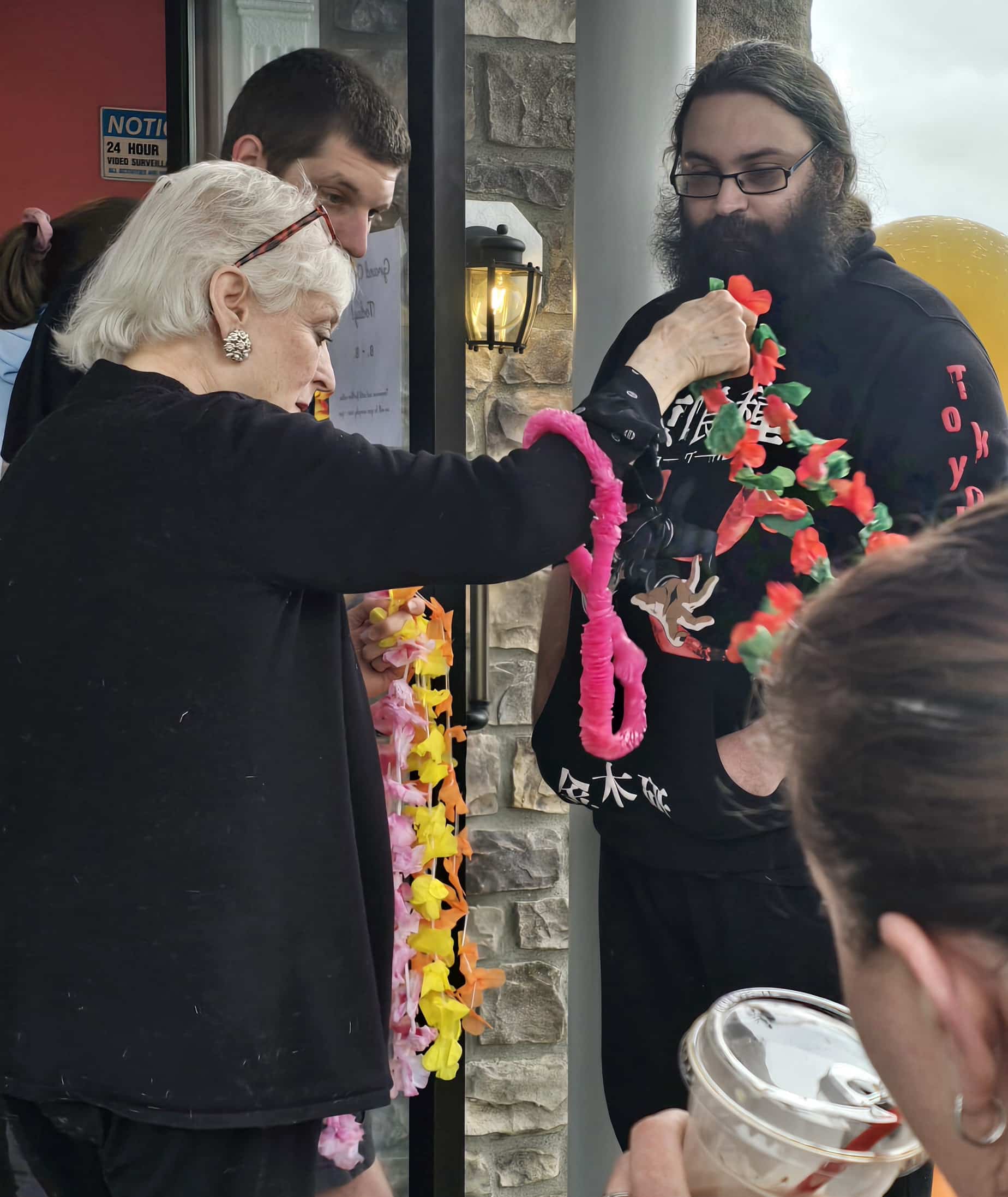 He was joined by his wife and young daughter as well as staff members for the ribbon-cutting, which was held during a pause in the luau-style party that featured a DJ spinning Hawaiian-flavored tunes, a hula dancer and a giveaway of Aloha Jay’s punch; a red tropical fruit drink that is an alternative to the hot and iced Kona coffee the shop sells.