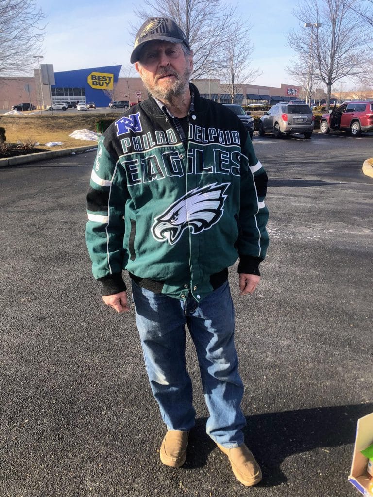 Helen caught up with local Eagles fan Mike in the parking lot of a local shopping center. Like many throughout the area, he’s predicting a big win for the Birds in Sunday’s Super Bowl LIX. (Credit: Helen Behe)