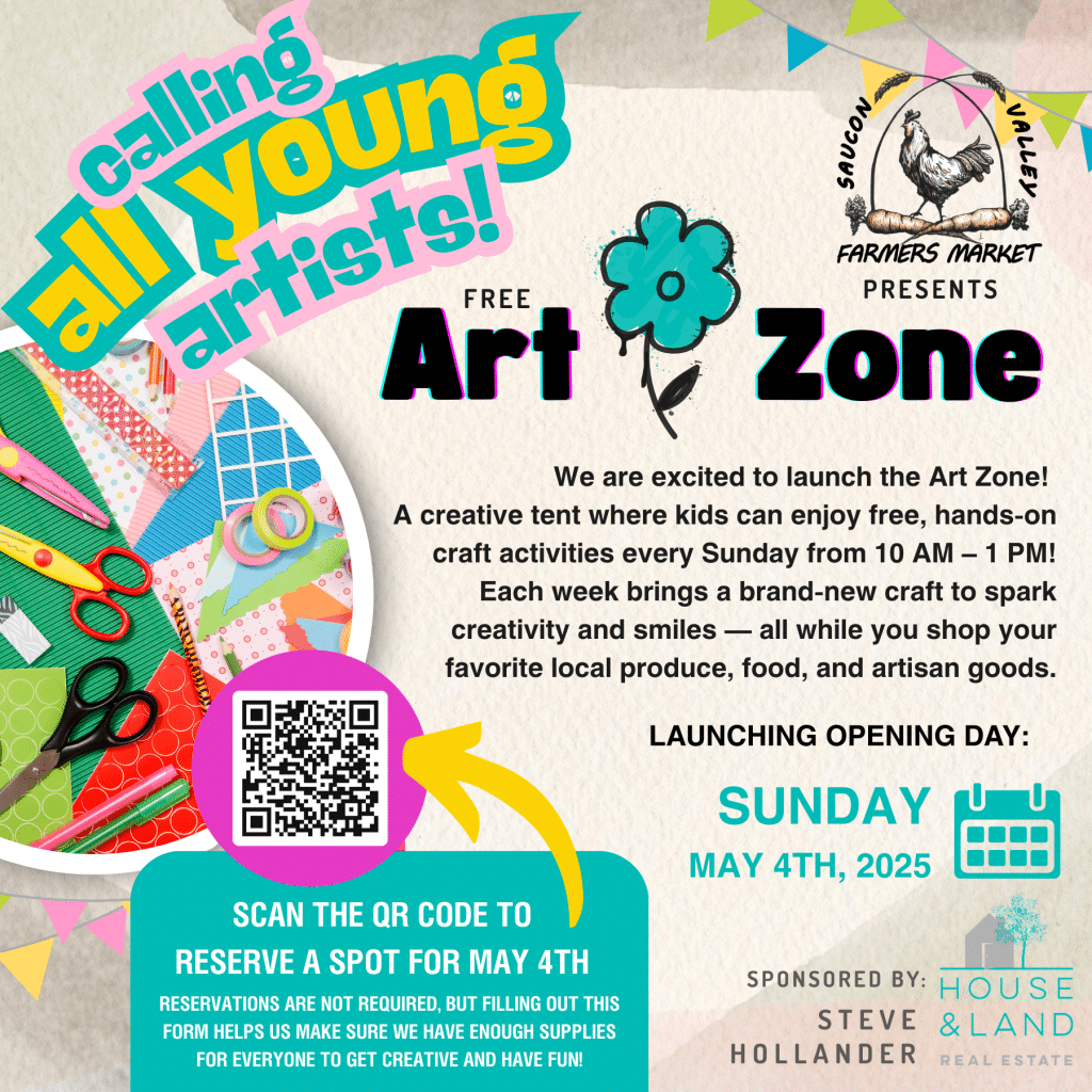 Also new this season will be monthly Master Gardener demos in the community tent and a weekly Art Zone kids tent sponsored by Steve Hollander, House & Land Real Estate, located near the information booth. The Art Zone tent will feature a volunteer-led weekly craft for little ones to enjoy while their parents shop.