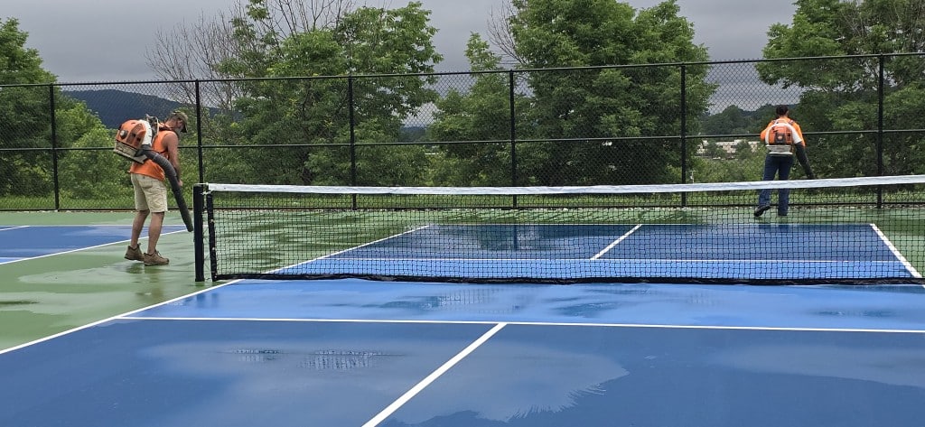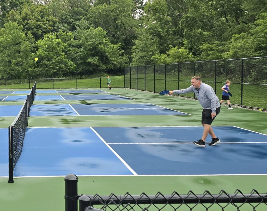 The courts were built by the township’s public works department, which director Roger Rasich estimated completed 95 percent of the work on them. They are located near the top end of the park and have a dedicated, adjacent parking area.