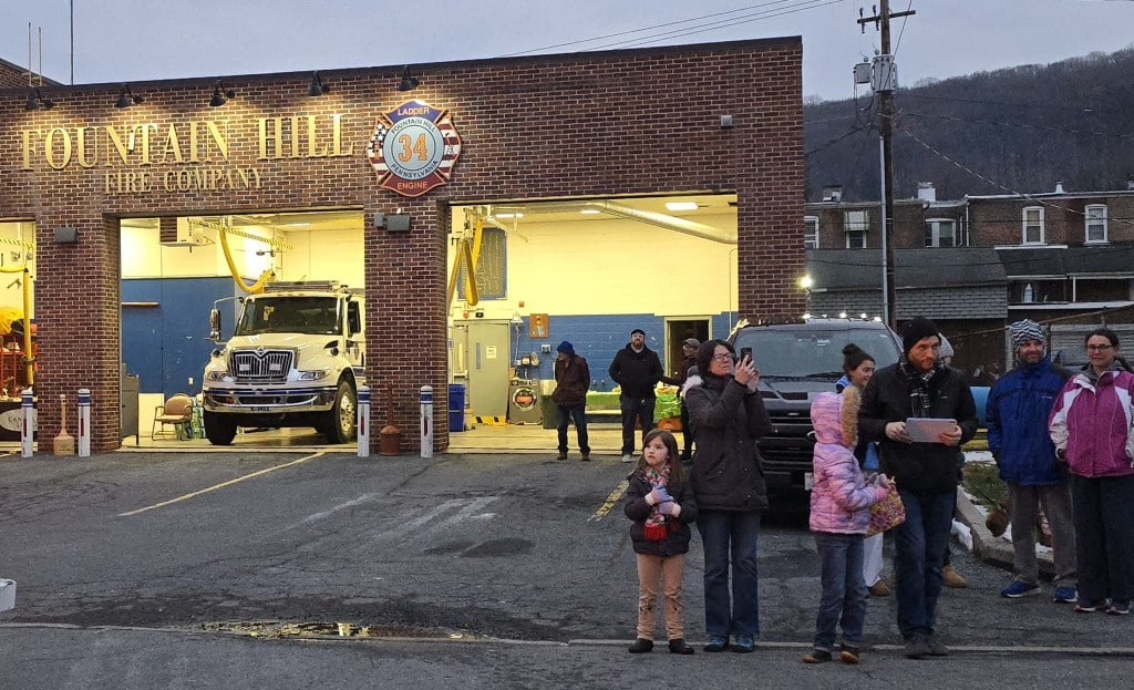 Residents gathered in front of the Fountain Hill Fire Department on Cherokee Street for the borough’s annual tree-lighting ceremony Sunday afternoon. The highlight of the event was Santa’s arrival on a firetruck.