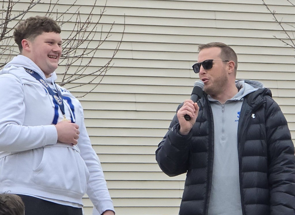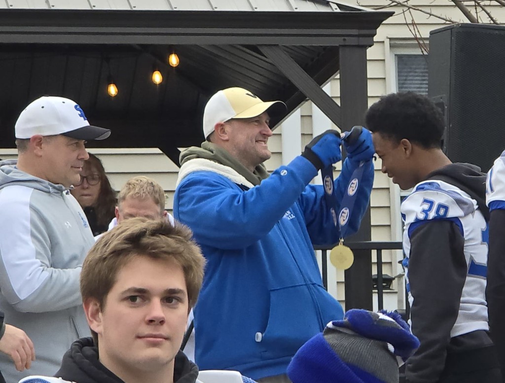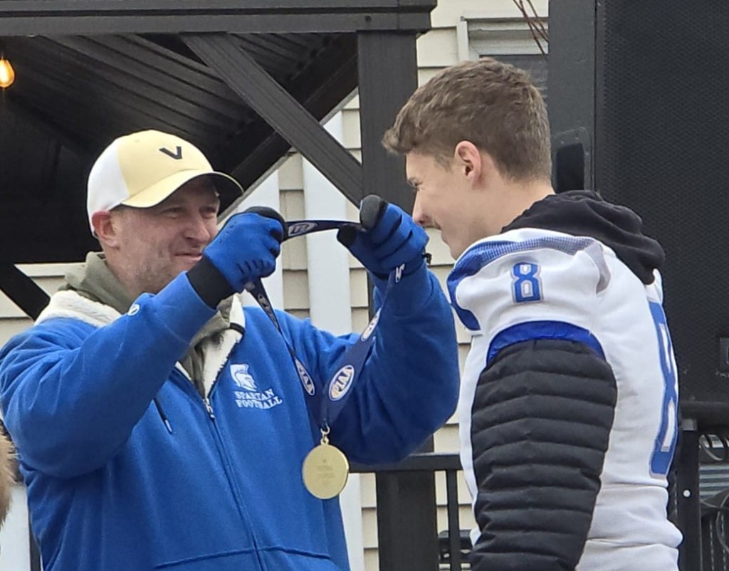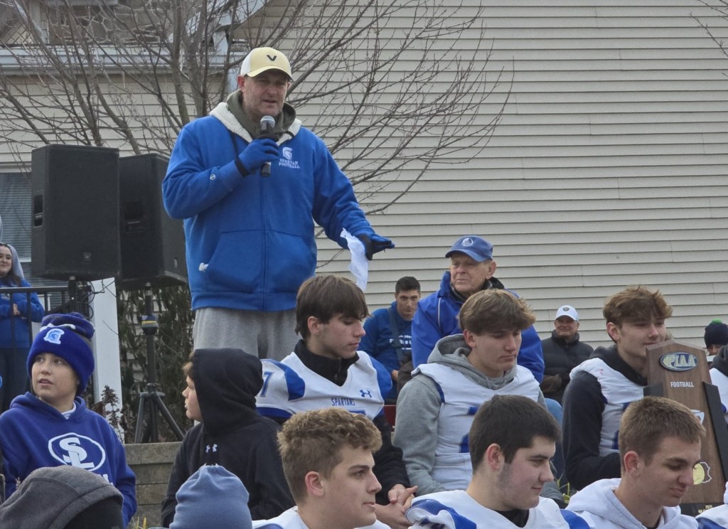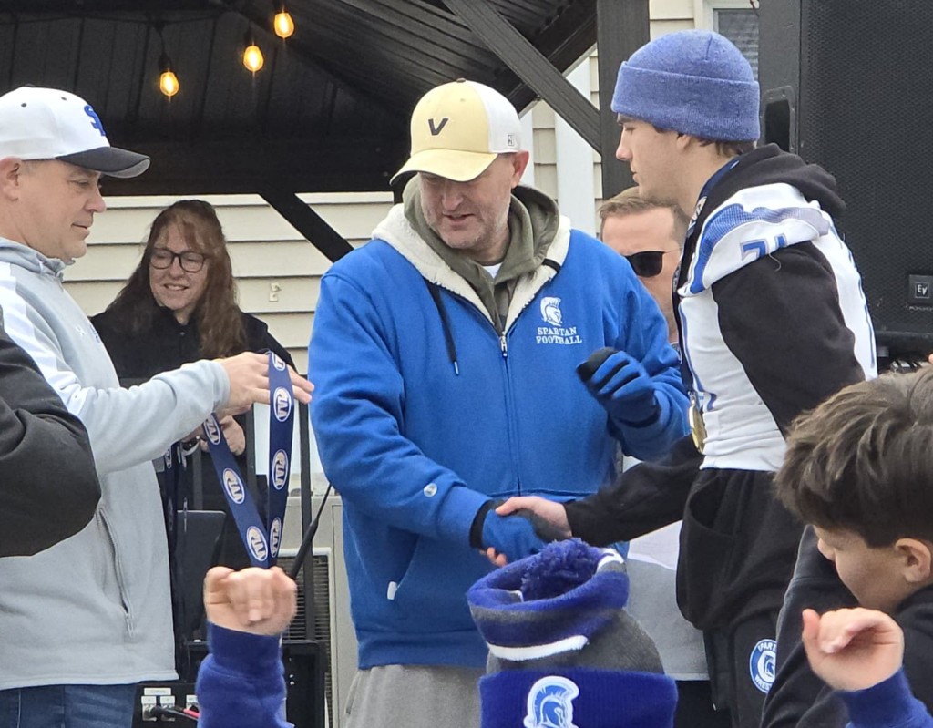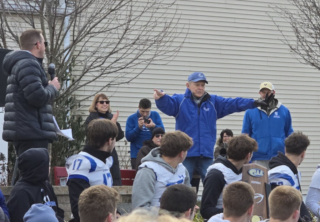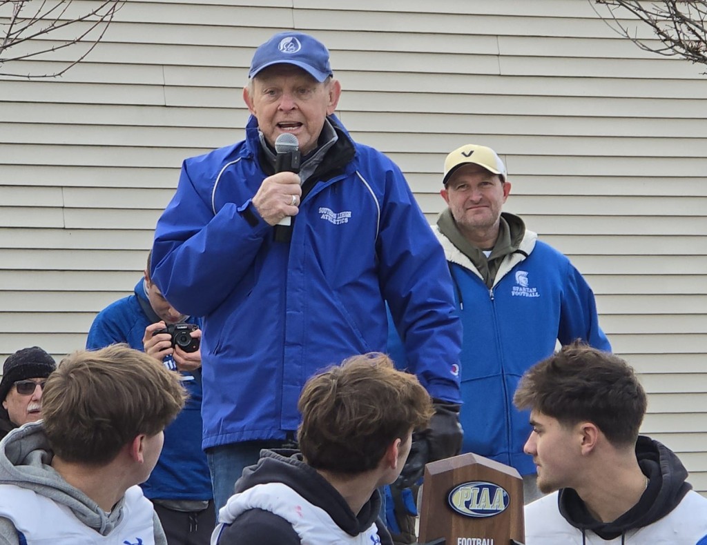 Another special guest at the medal ceremony was legendary Southern Lehigh High School coach Bob Clark, who oversaw the development of the football program at Southern Lehigh in 1968. Clark recalled the the excitement of the varsity team’s first victory in 1970 and told the 2025 Spartans how proud he is of them.