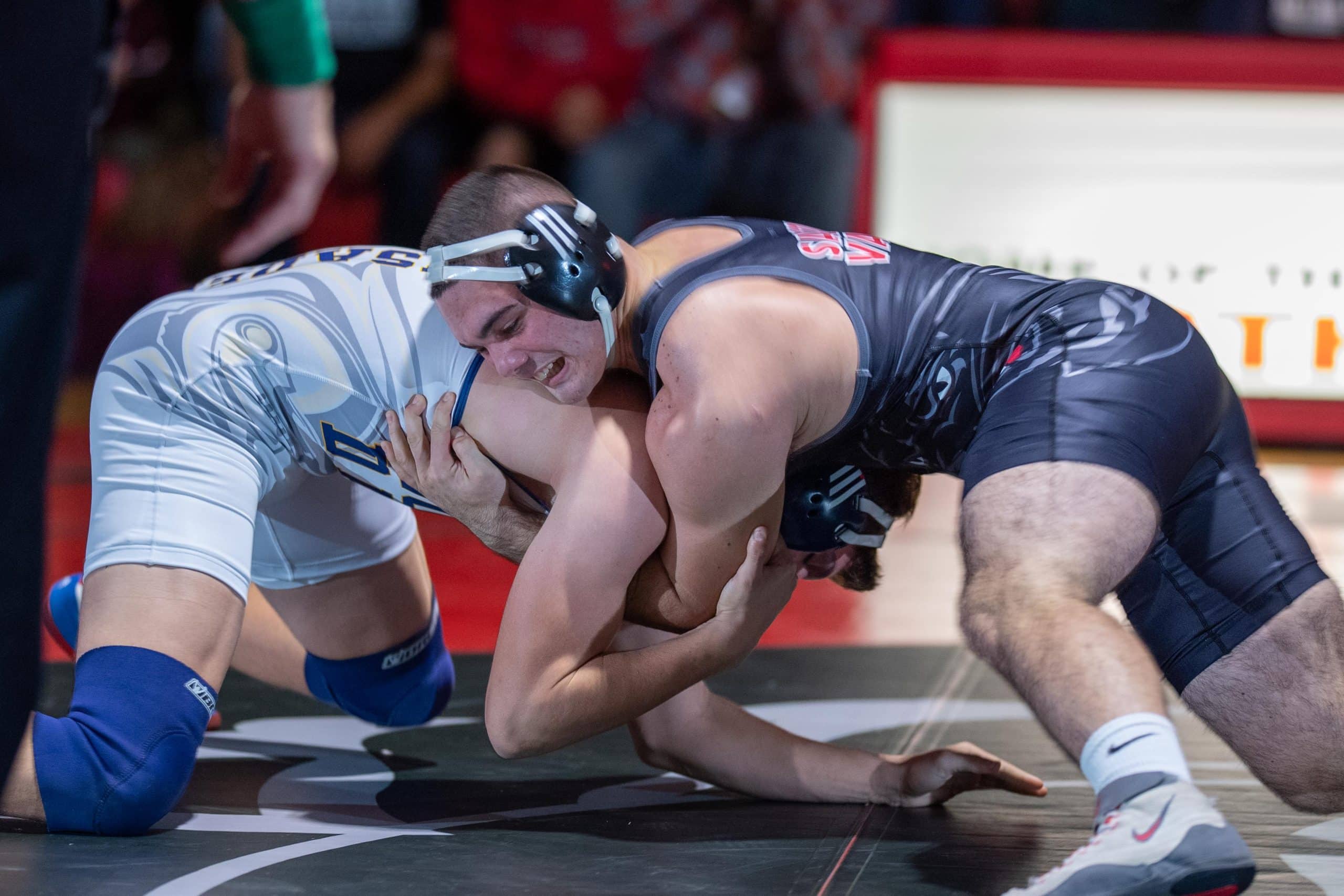 Over the course of the next two bouts, the Crusaders went on a 9-point run. Derek Berlitz (195) was able to ride-out Braydyn Lugardo to earn a 2-1 decision in an Ultimate-Tie-Breaker. The Berlitz victory was followed by teammate Jason Sine’s pin at 195.