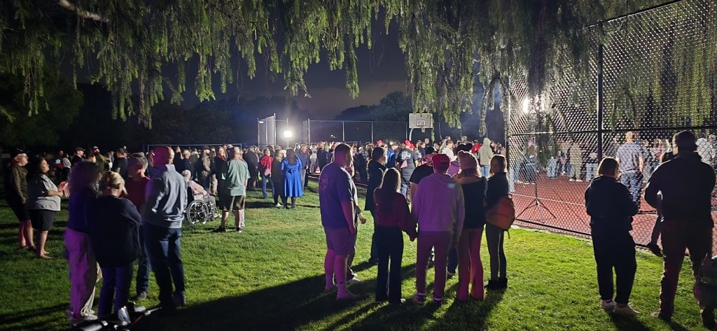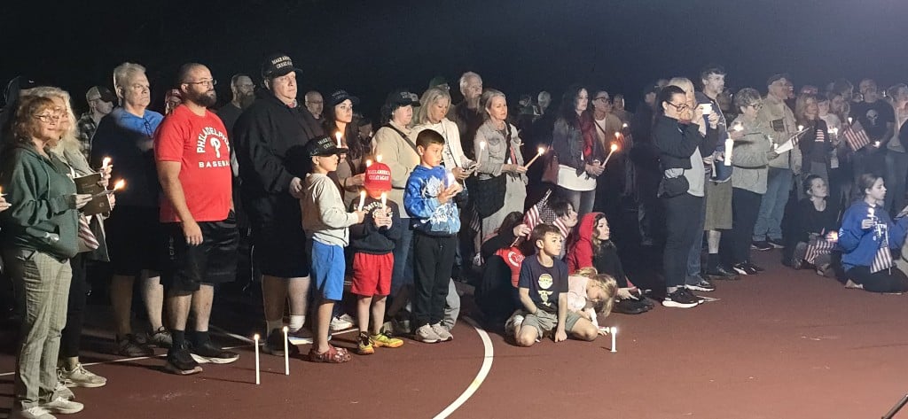 Organized on Facebook by Katelyn Opdyke and Haleigh Oliemuller, the 8 p.m. event was held on the park’s basketball court and was led by Pastor Keith Strunk of Saucon Community Church in Lower Saucon Township.