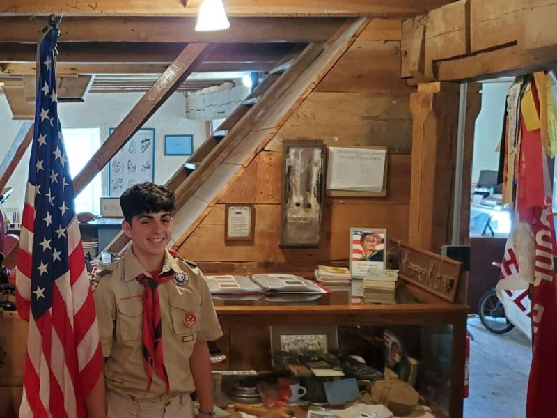 Joey Di Russo, who is a Life Scout in Hellertown Boy Scout Troop 319 and a senior at Saucon Valley High School, designed and built a display cabinet for the Historical Society over the course of this year.